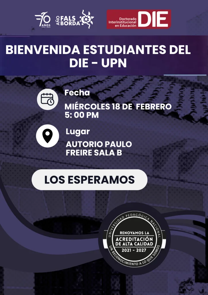 Cordialmente invitamos a todas y todos los estudiantes activos a la bienvenida que organiza el Doctorado en Educación para su comunidad estudiantil. Aquí ofreceremos un marco general de lo que se aproxima para este periodo académico 2026-1. El evento tendrá lugar en el Auditorio Paulo Freire sala B el día miércoles 18 de febrero a las 5: 00 pm.
